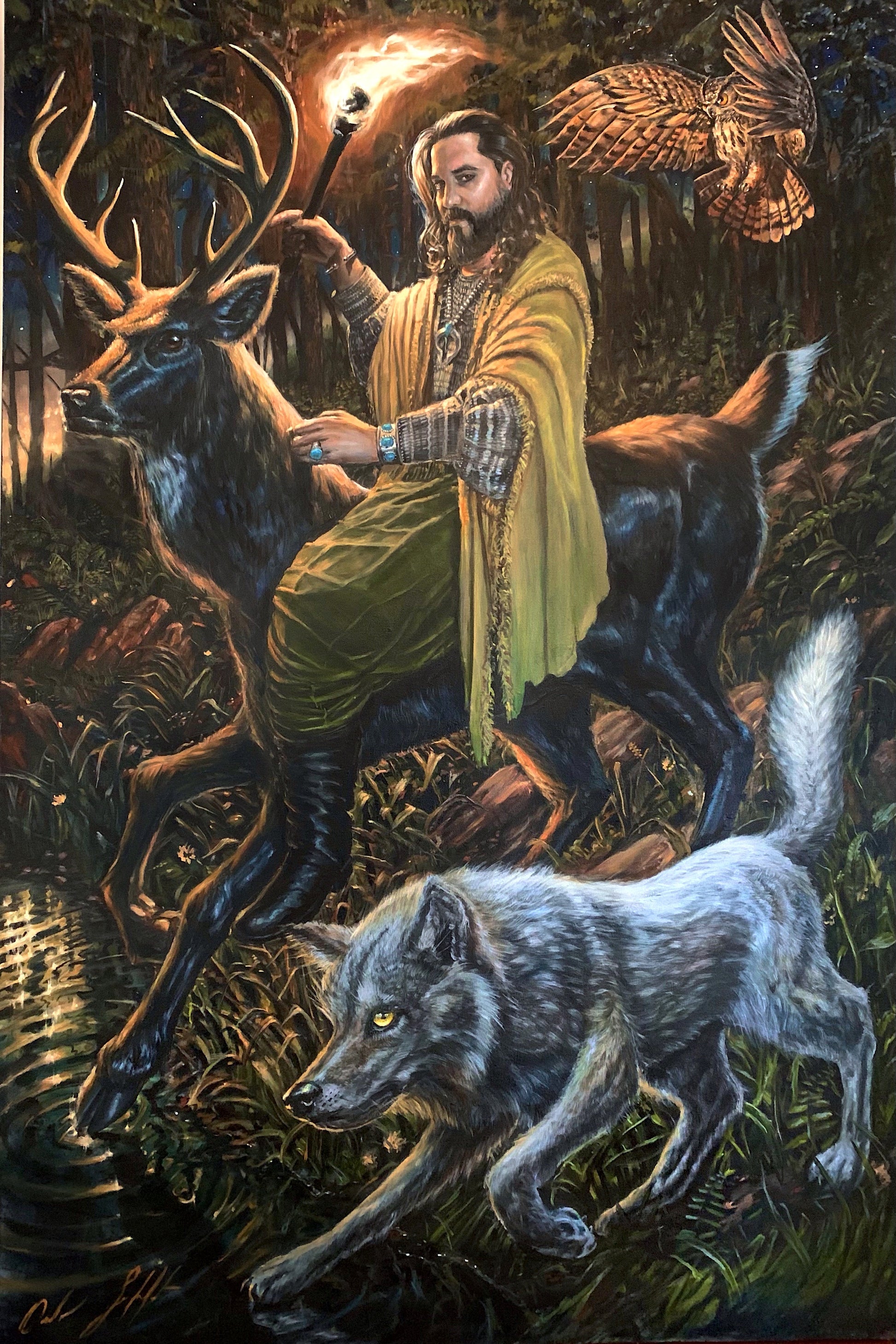 Based on the tarot card of the same name, this work presents the esoteric archetype journeying through the Chihuahuan Sierra on a blue deer, accompanied by the owl and the wolf as guardians. As in most of the artist’s work, the five elements are depicted as tools for self-knowledge and introspection.